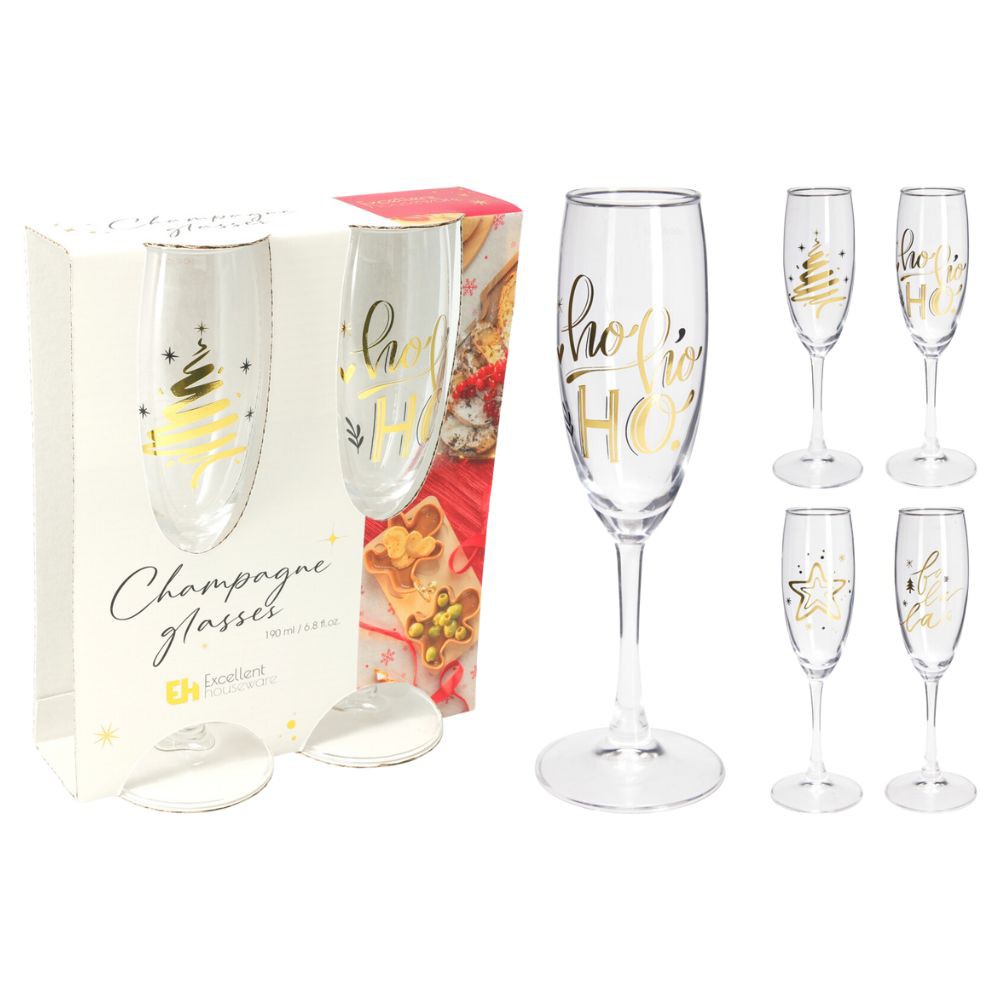 Χριστουγεννιάτικα Ποτήρια Σαμπάνιας Σετ 2 Χρώμ. 190ml