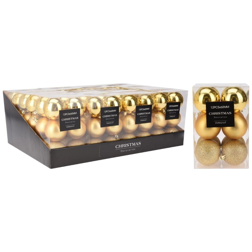 Χριστουγεννιάτικες Μπάλες Χρυσές Σετ 12X 60mm